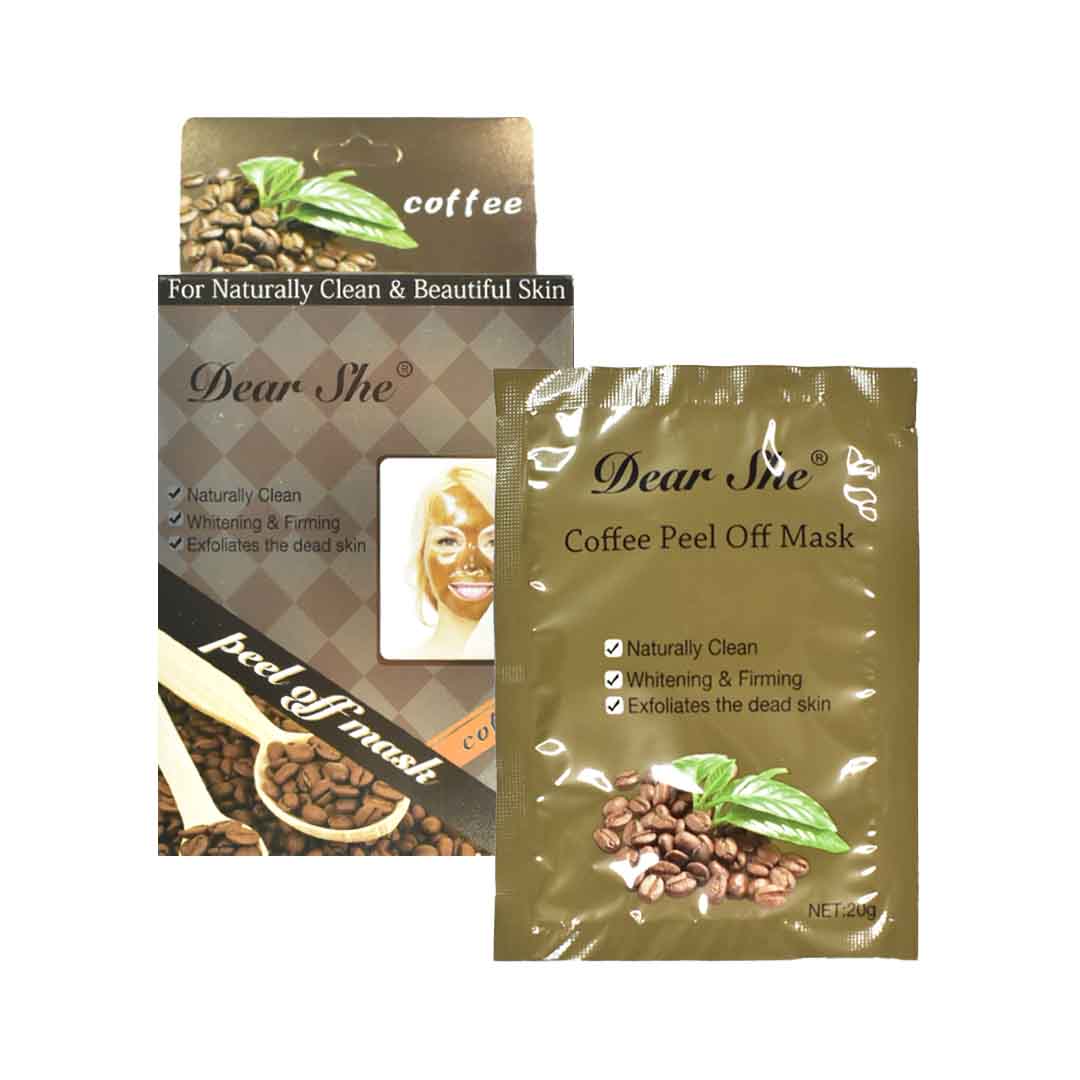 Caja de mascarillas de la marca Dear She en su presentación de café son ideales para todo tipo de piel, sus propiedades naturales te brindan una suavidad y humectación profunda.