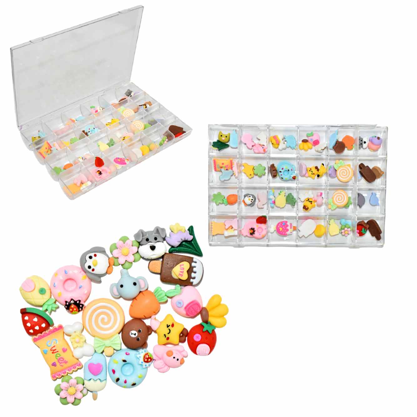 Decoraciones para uña estilo Kawaii 24 compartimentos