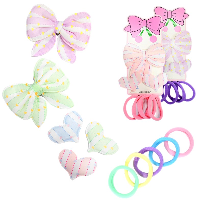 El kit está compuesto de colitas y ganchitos ideales para pequeños detalles en el cabello.