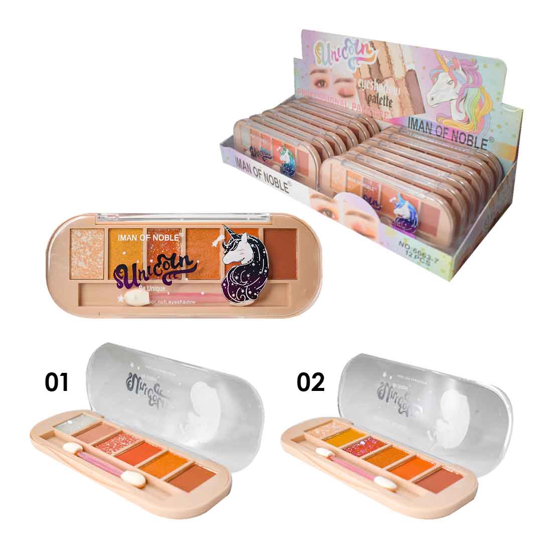 Sombras de la marca Iman Of Noble en su presentación con diseño de unicornio cuenta con 6 colores con acabados matte y glitter, su excelente pigmentación y tamaño compacto las vuelven las favoritas de todas.