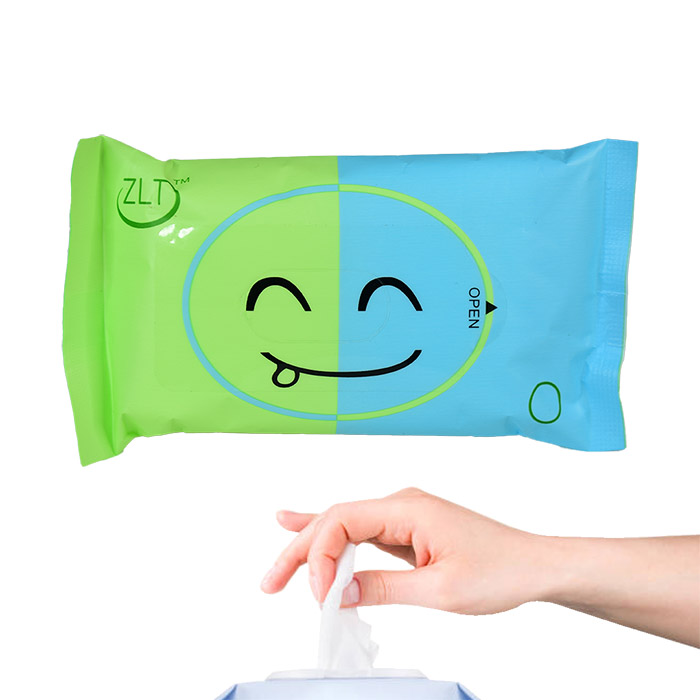 Toallitas húmedas empaque verde con azul carita feliz